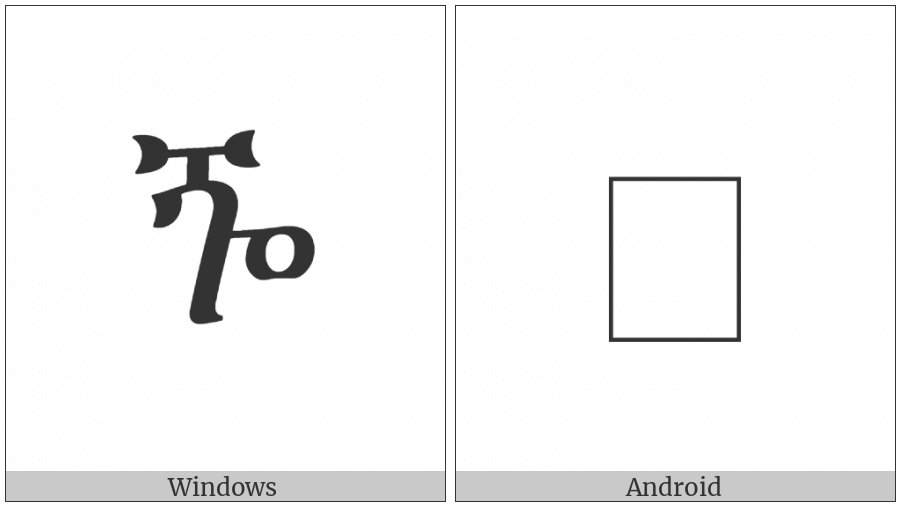 The image below shows how the “Ethiopic Syllable Ggwa” symbol might look like on different operating systems. If the font in which this web site is displayed does not contain the symbol and there is no fallback font able to render it, you can use the image below to get an idea of what it should look like.