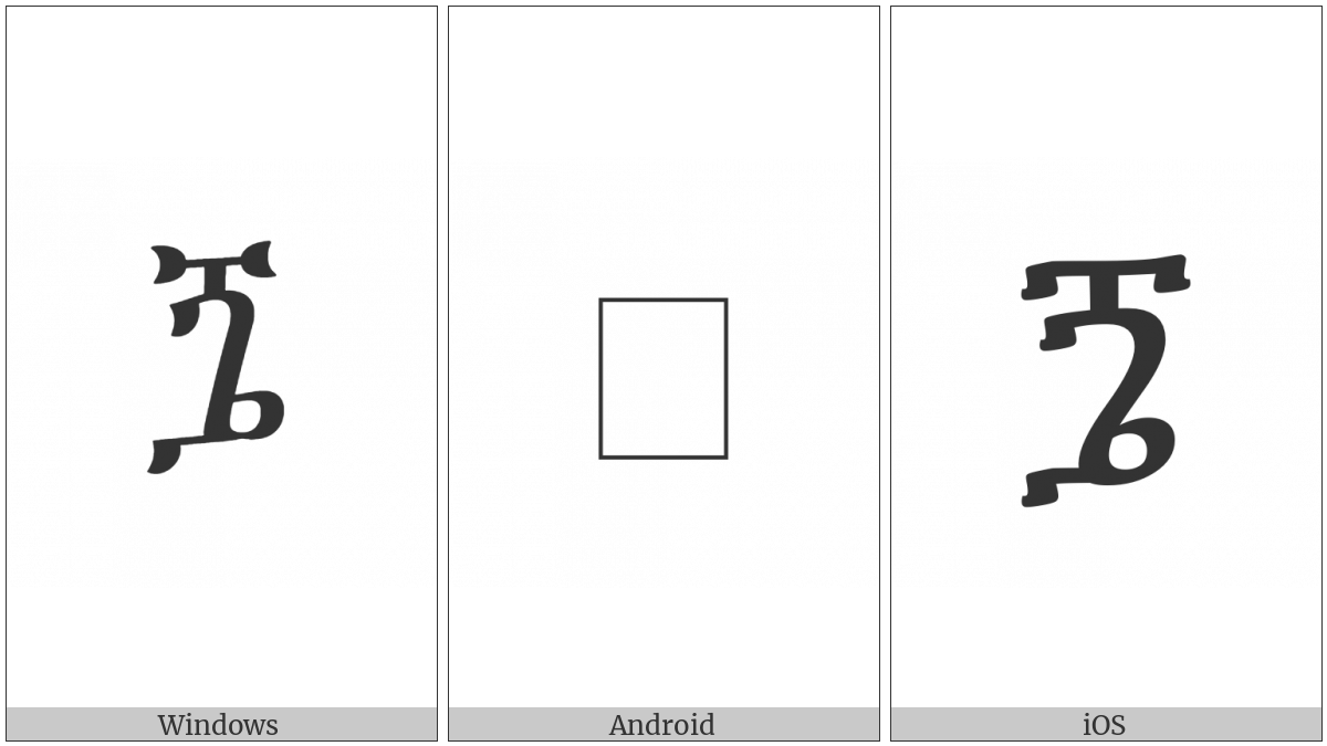 The image below shows how the “Ethiopic Syllable Ggwee” symbol might look like on different operating systems. If the font in which this web site is displayed does not contain the symbol and there is no fallback font able to render it, you can use the image below to get an idea of what it should look like.