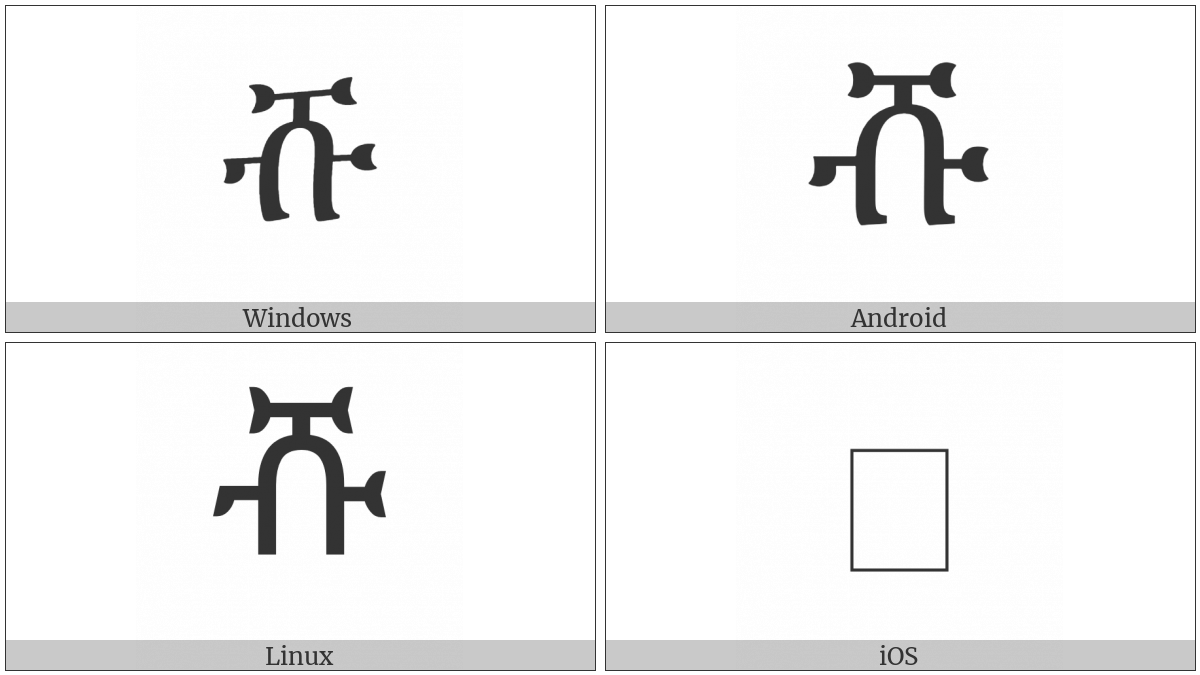 The image below shows how the “Ethiopic Syllable Ssu” symbol might look like on different operating systems. If the font in which this web site is displayed does not contain the symbol and there is no fallback font able to render it, you can use the image below to get an idea of what it should look like.