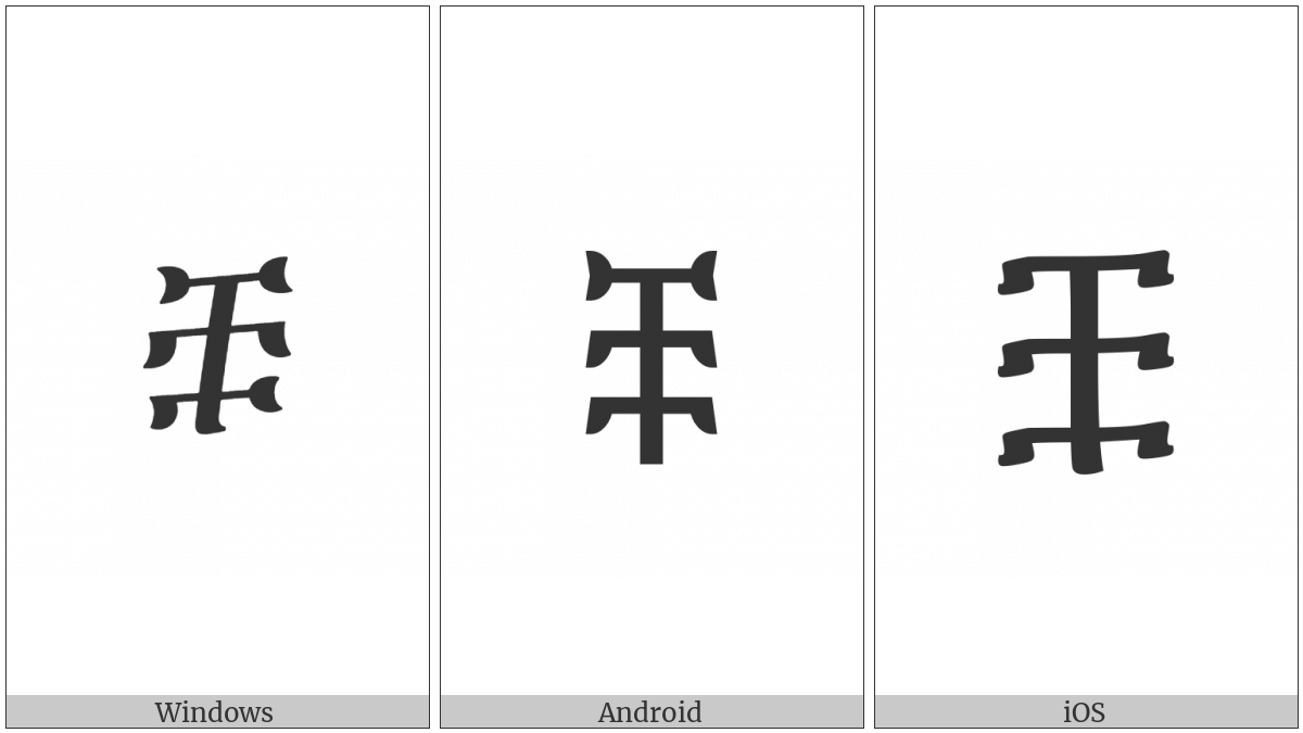 The image below shows how the “Ethiopic Syllable Ccu” symbol might look like on different operating systems. If the font in which this web site is displayed does not contain the symbol and there is no fallback font able to render it, you can use the image below to get an idea of what it should look like.