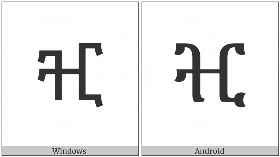 The image below shows how the “Ethiopic Syllable Zzi” symbol might look like on different operating systems. If the font in which this web site is displayed does not contain the symbol and there is no fallback font able to render it, you can use the image below to get an idea of what it should look like.