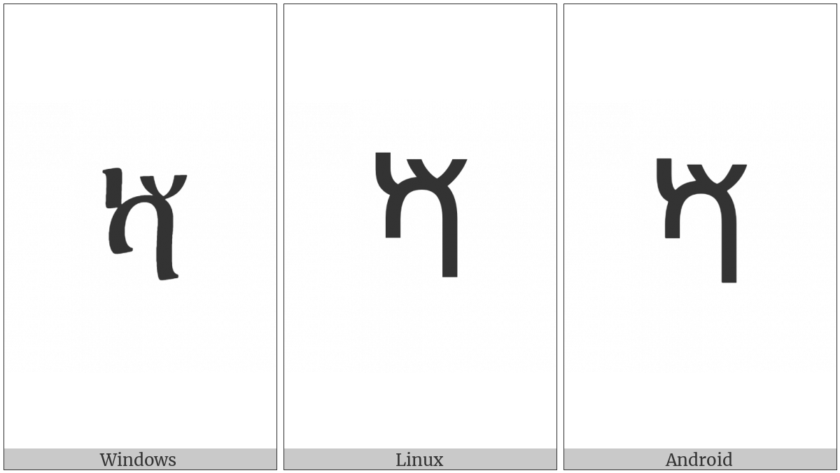 The image below shows how the “Ethiopic Syllable Kyaa” symbol might look like on different operating systems. If the font in which this web site is displayed does not contain the symbol and there is no fallback font able to render it, you can use the image below to get an idea of what it should look like.