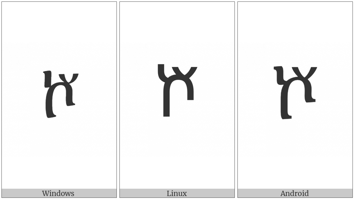 The image below shows how the “Ethiopic Syllable Kyo” symbol might look like on different operating systems. If the font in which this web site is displayed does not contain the symbol and there is no fallback font able to render it, you can use the image below to get an idea of what it should look like.