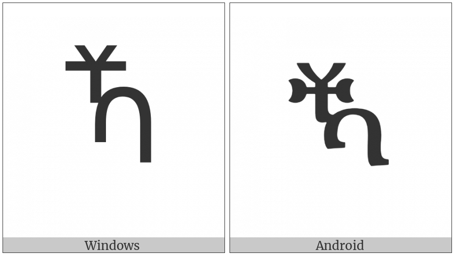 The image below shows how the “Ethiopic Syllable Xyaa” symbol might look like on different operating systems. If the font in which this web site is displayed does not contain the symbol and there is no fallback font able to render it, you can use the image below to get an idea of what it should look like.