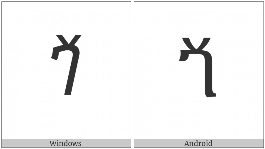 The image below shows how the “Ethiopic Syllable Gya” symbol might look like on different operating systems. If the font in which this web site is displayed does not contain the symbol and there is no fallback font able to render it, you can use the image below to get an idea of what it should look like.