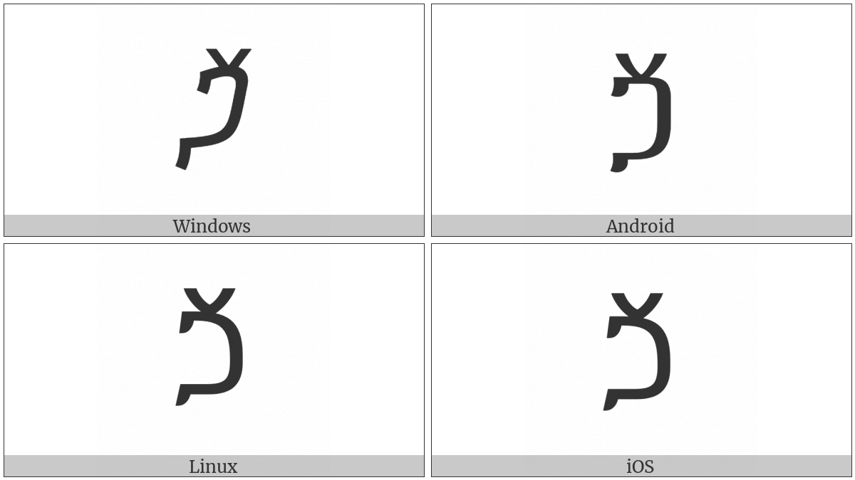 The image below shows how the “Ethiopic Syllable Gyaa” symbol might look like on different operating systems. If the font in which this web site is displayed does not contain the symbol and there is no fallback font able to render it, you can use the image below to get an idea of what it should look like.