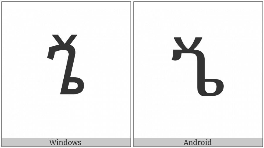The image below shows how the “Ethiopic Syllable Gyee” symbol might look like on different operating systems. If the font in which this web site is displayed does not contain the symbol and there is no fallback font able to render it, you can use the image below to get an idea of what it should look like.