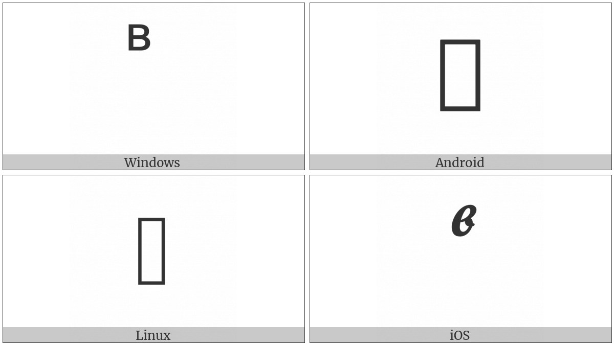 The image below shows how the “Combining Cyrillic Letter Ve” symbol might look like on different operating systems. If the font in which this web site is displayed does not contain the symbol and there is no fallback font able to render it, you can use the image below to get an idea of what it should look like.