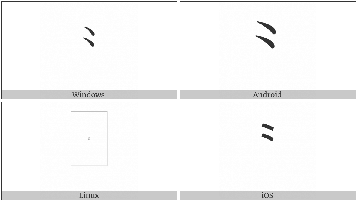 The image below shows how the “Cjk Radical Repeat” symbol might look like on different operating systems. If the font in which this web site is displayed does not contain the symbol and there is no fallback font able to render it, you can use the image below to get an idea of what it should look like.