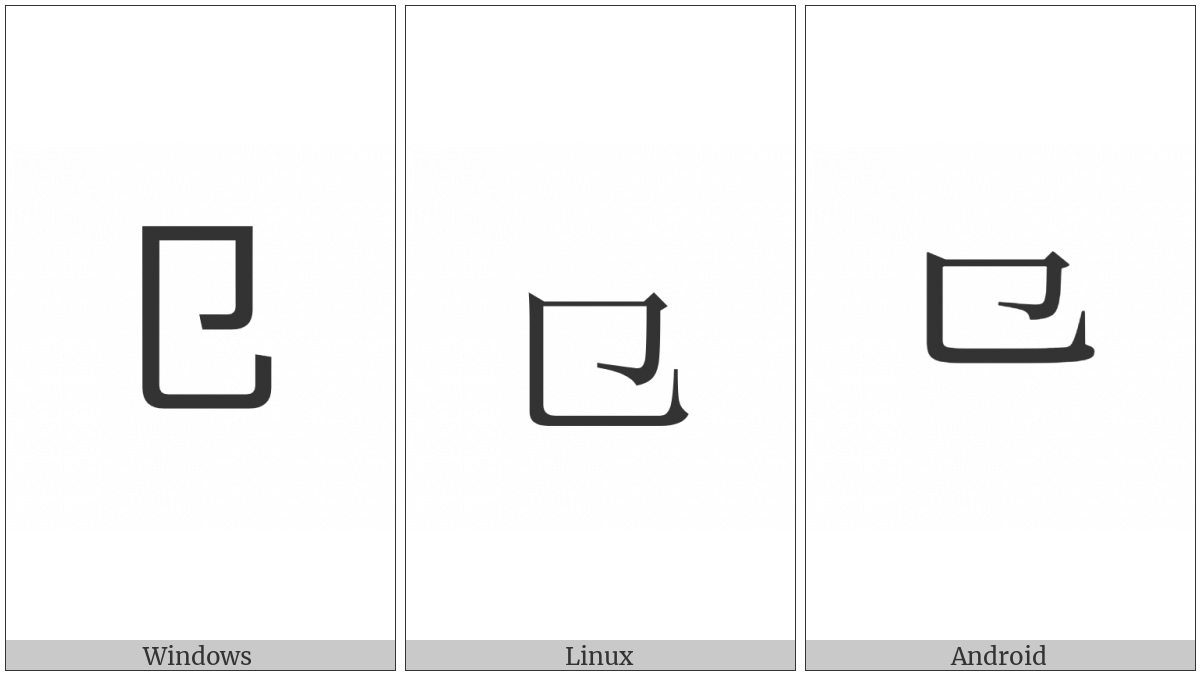 The image below shows how the “Cjk Radical Seal” symbol might look like on different operating systems. If the font in which this web site is displayed does not contain the symbol and there is no fallback font able to render it, you can use the image below to get an idea of what it should look like.