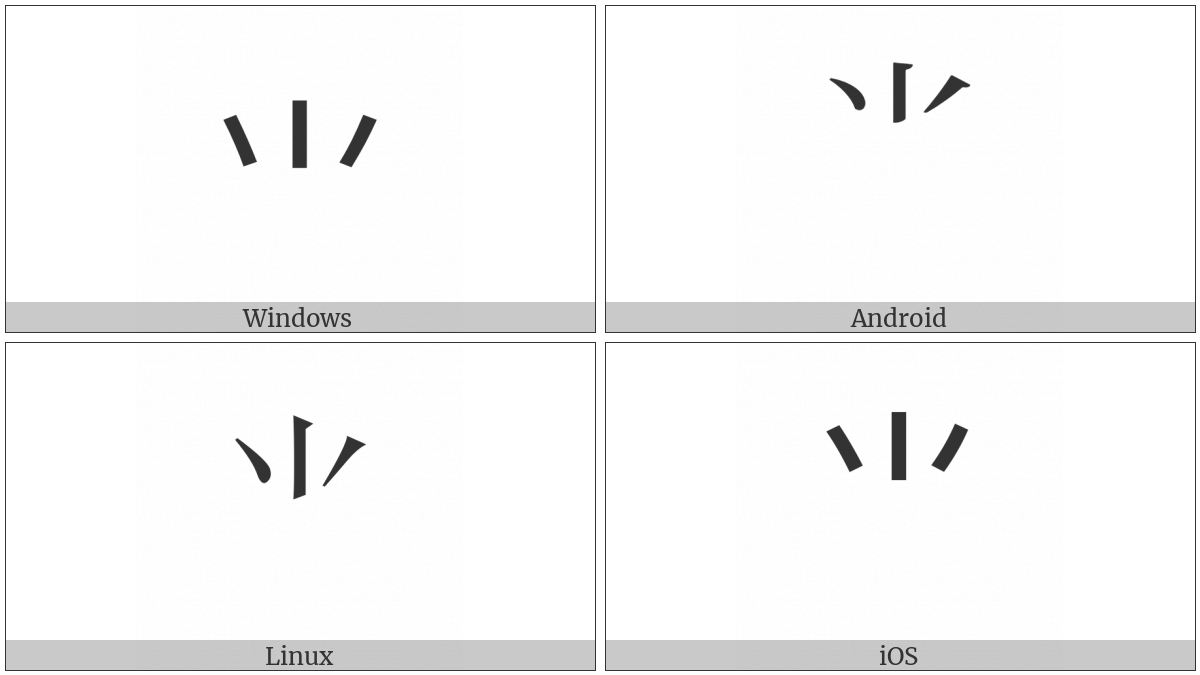 The image below shows how the “Cjk Radical Small One” symbol might look like on different operating systems. If the font in which this web site is displayed does not contain the symbol and there is no fallback font able to render it, you can use the image below to get an idea of what it should look like.