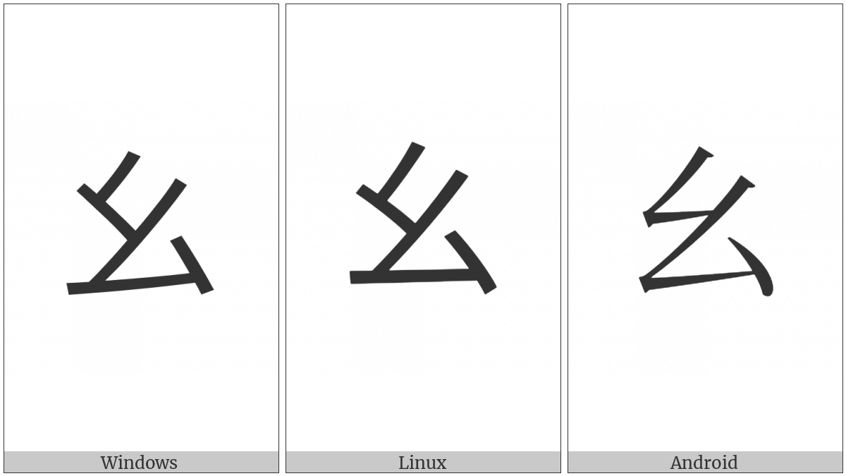 The image below shows how the “Cjk Radical Thread” symbol might look like on different operating systems. If the font in which this web site is displayed does not contain the symbol and there is no fallback font able to render it, you can use the image below to get an idea of what it should look like.