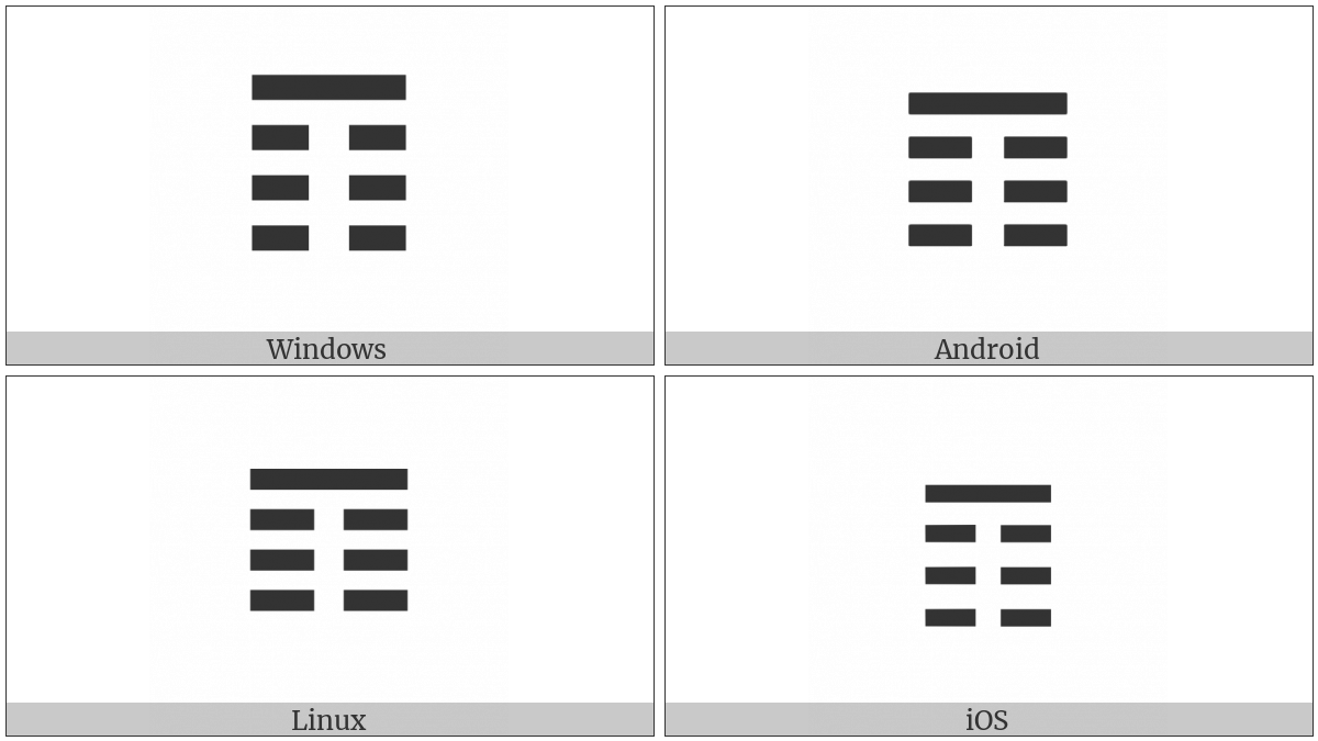 The image below shows how the “Tetragram For Penetration” symbol might look like on different operating systems. If the font in which this web site is displayed does not contain the symbol and there is no fallback font able to render it, you can use the image below to get an idea of what it should look like.