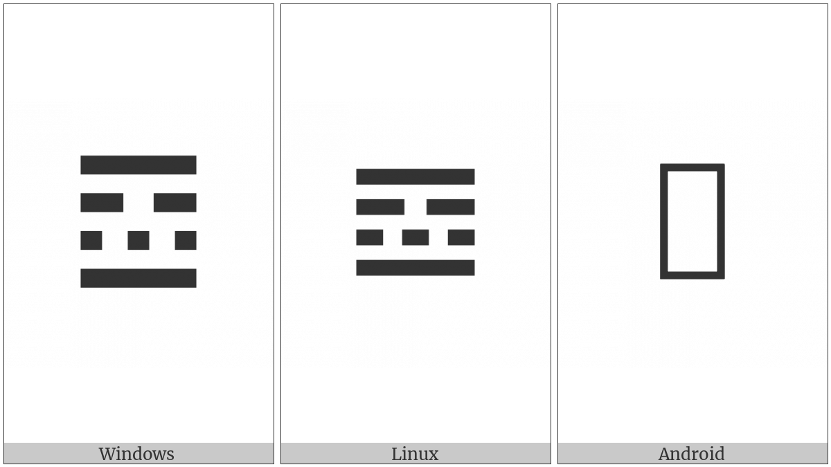 The image below shows how the “Tetragram For Contact” symbol might look like on different operating systems. If the font in which this web site is displayed does not contain the symbol and there is no fallback font able to render it, you can use the image below to get an idea of what it should look like.