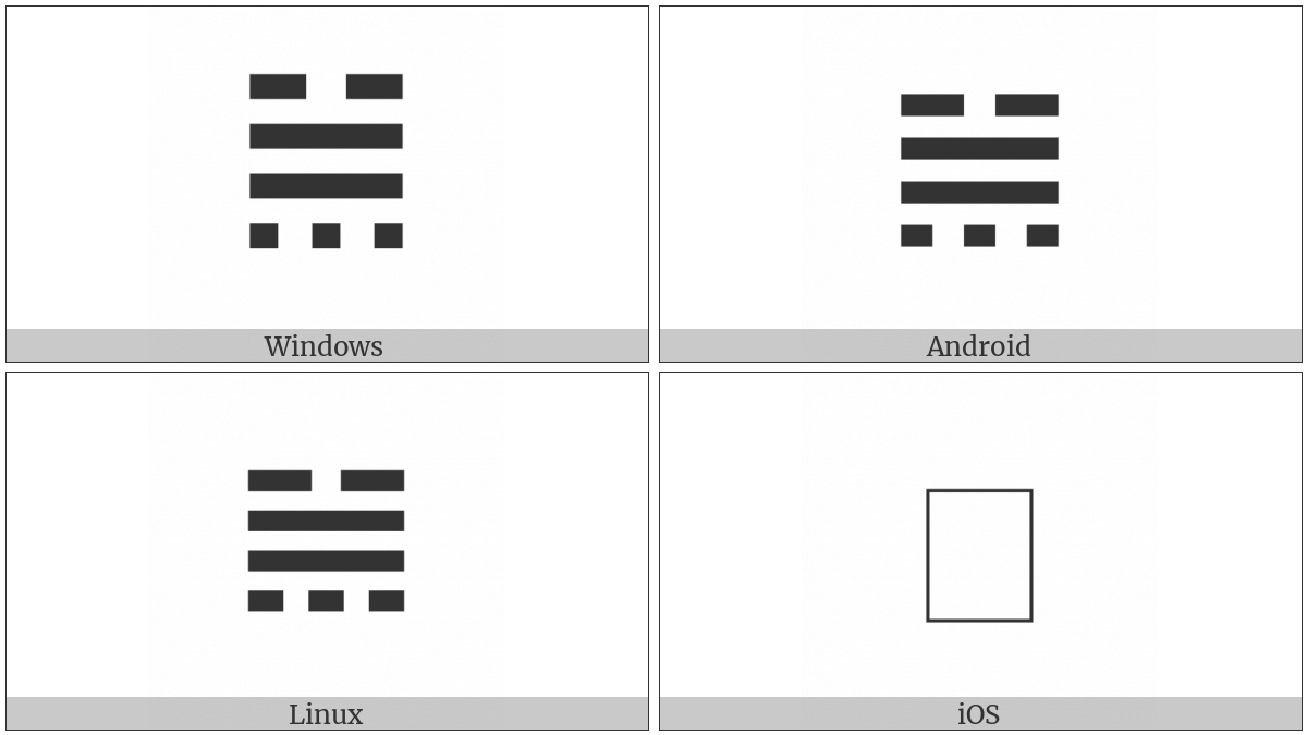The image below shows how the “Tetragram For Bold Resolution” symbol might look like on different operating systems. If the font in which this web site is displayed does not contain the symbol and there is no fallback font able to render it, you can use the image below to get an idea of what it should look like.