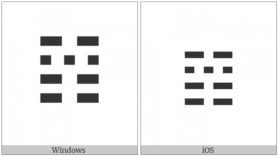 The image below shows how the “Tetragram For Vastness Or Wasting” symbol might look like on different operating systems. If the font in which this web site is displayed does not contain the symbol and there is no fallback font able to render it, you can use the image below to get an idea of what it should look like.
