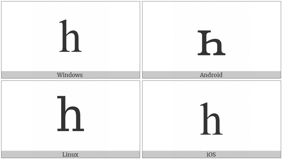 The image below shows how the “Cyrillic Small Letter Shha” symbol might look like on different operating systems. If the font in which this web site is displayed does not contain the symbol and there is no fallback font able to render it, you can use the image below to get an idea of what it should look like.
