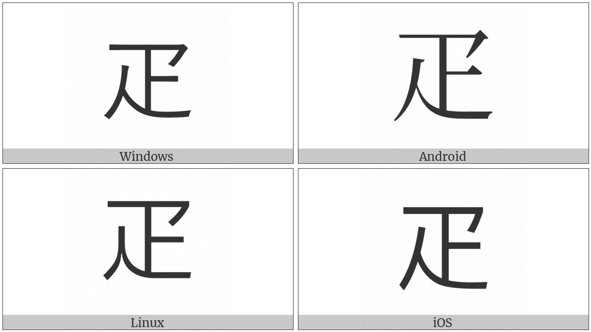 The image below shows how the “Kangxi Radical Bolt Of Cloth” symbol might look like on different operating systems. If the font in which this web site is displayed does not contain the symbol and there is no fallback font able to render it, you can use the image below to get an idea of what it should look like.