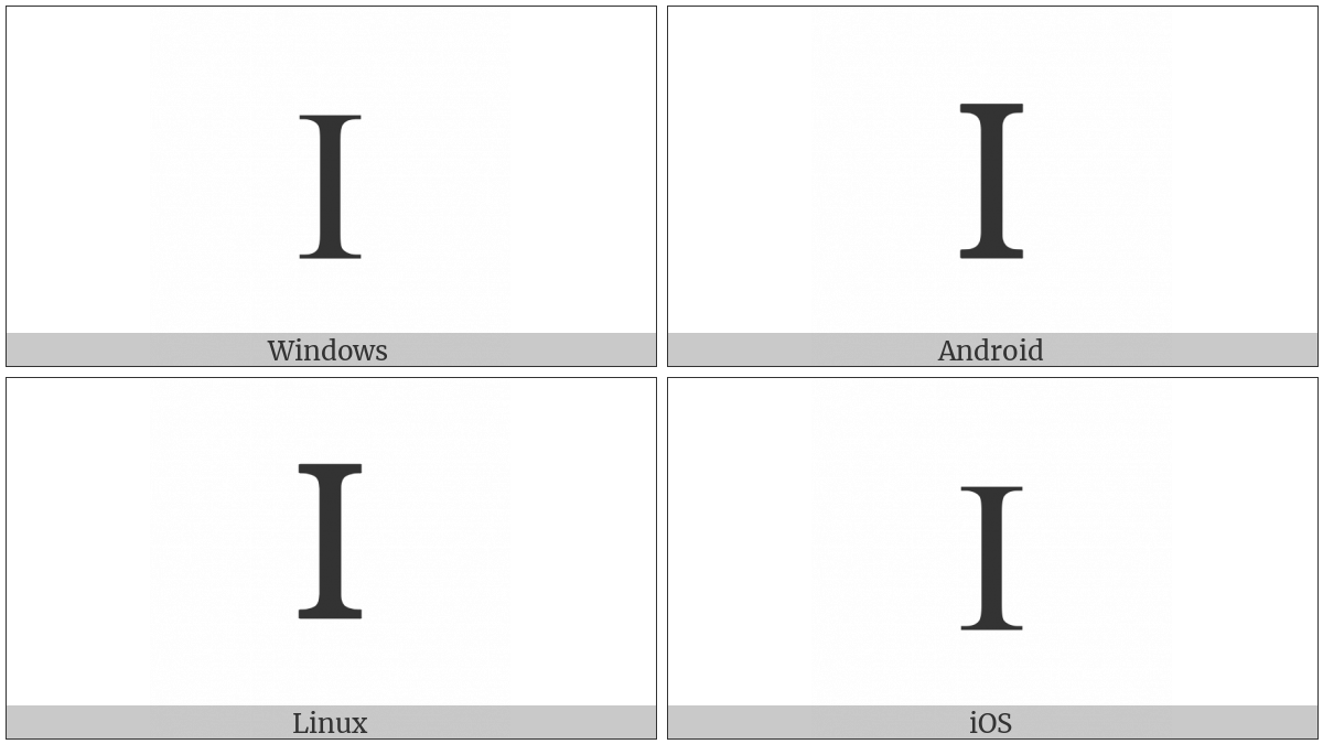 The image below shows how the “Cyrillic Letter Palochka” symbol might look like on different operating systems. If the font in which this web site is displayed does not contain the symbol and there is no fallback font able to render it, you can use the image below to get an idea of what it should look like.
