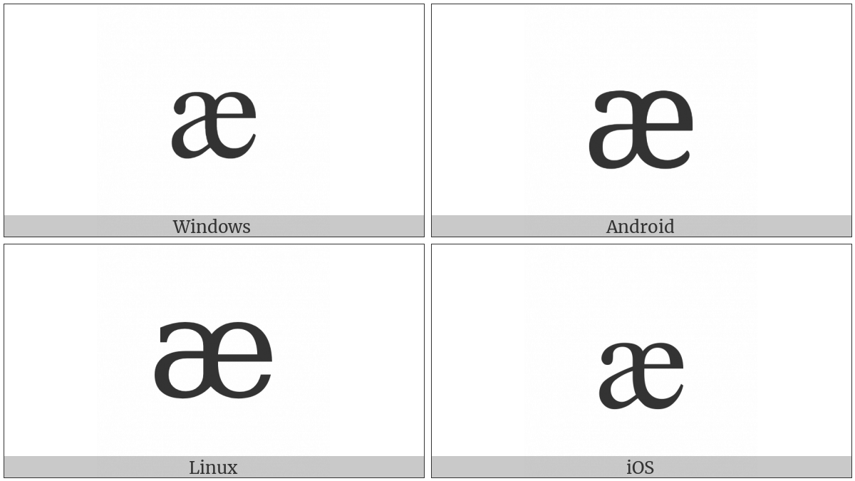 The image below shows how the “Cyrillic Small Ligature A Ie” symbol might look like on different operating systems. If the font in which this web site is displayed does not contain the symbol and there is no fallback font able to render it, you can use the image below to get an idea of what it should look like.