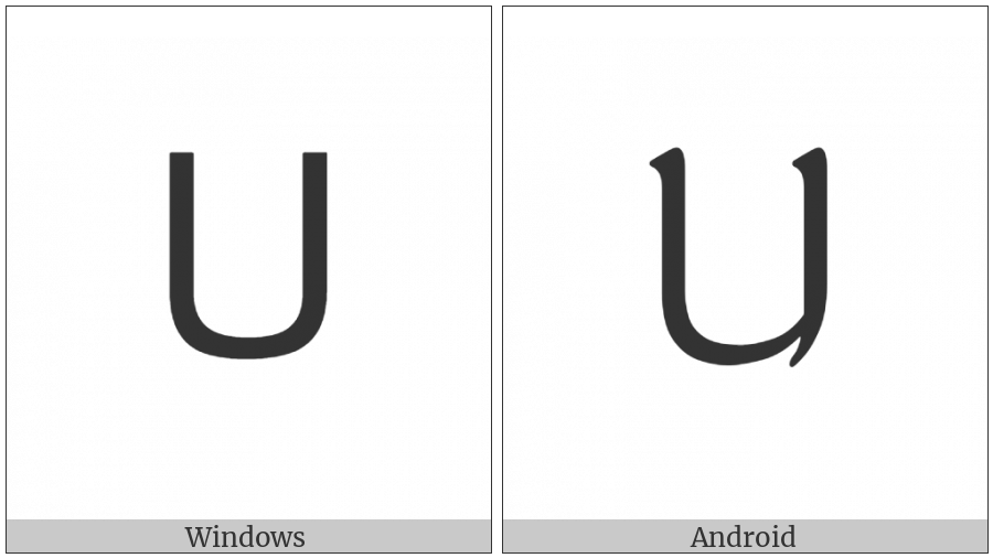 The image below shows how the “Adlam Capital Letter I” symbol might look like on different operating systems. If the font in which this web site is displayed does not contain the symbol and there is no fallback font able to render it, you can use the image below to get an idea of what it should look like.