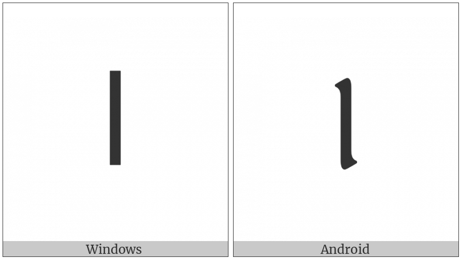 The image below shows how the “Adlam Digit One” symbol might look like on different operating systems. If the font in which this web site is displayed does not contain the symbol and there is no fallback font able to render it, you can use the image below to get an idea of what it should look like.