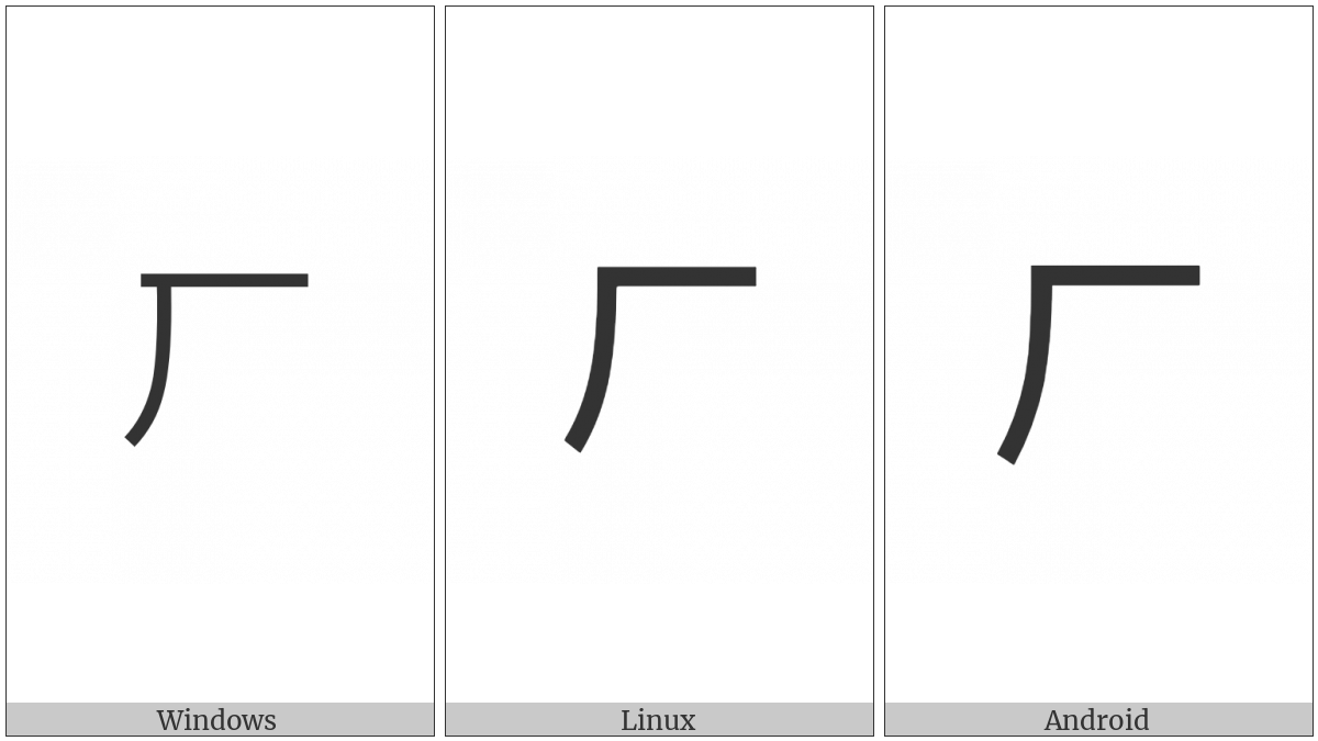 The image below shows how the “Bopomofo Letter H” symbol might look like on different operating systems. If the font in which this web site is displayed does not contain the symbol and there is no fallback font able to render it, you can use the image below to get an idea of what it should look like.