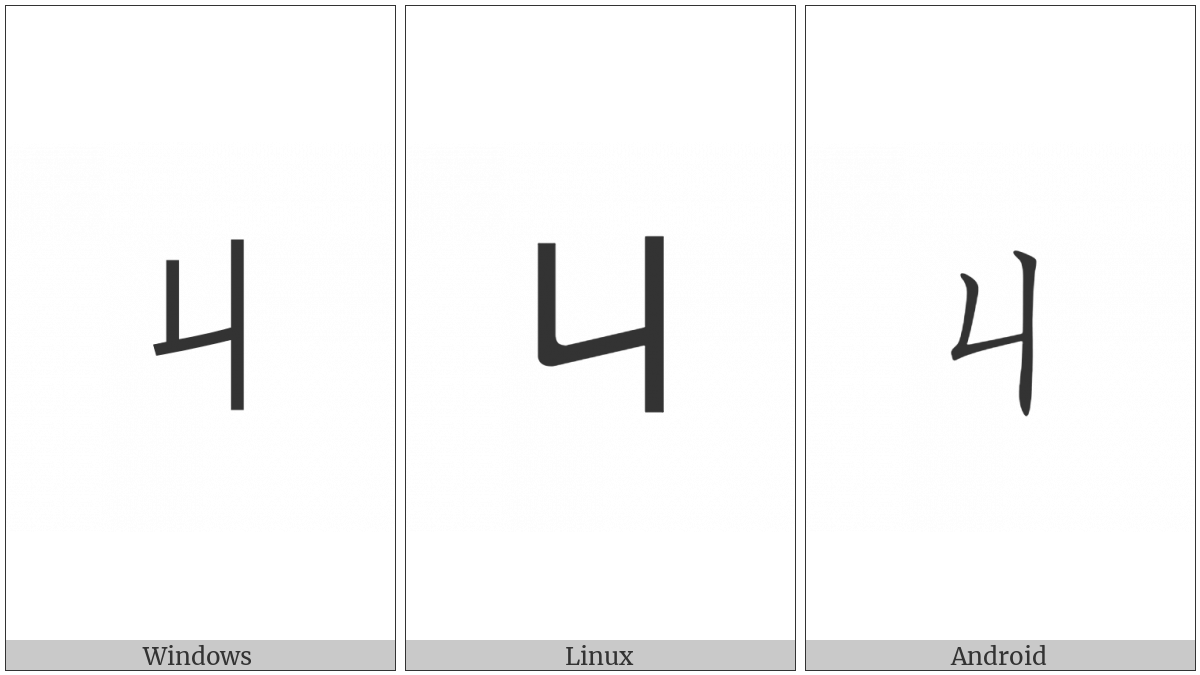 The image below shows how the “Bopomofo Letter J” symbol might look like on different operating systems. If the font in which this web site is displayed does not contain the symbol and there is no fallback font able to render it, you can use the image below to get an idea of what it should look like.
