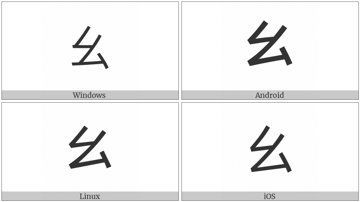 The image below shows how the “Bopomofo Letter Au” symbol might look like on different operating systems. If the font in which this web site is displayed does not contain the symbol and there is no fallback font able to render it, you can use the image below to get an idea of what it should look like.