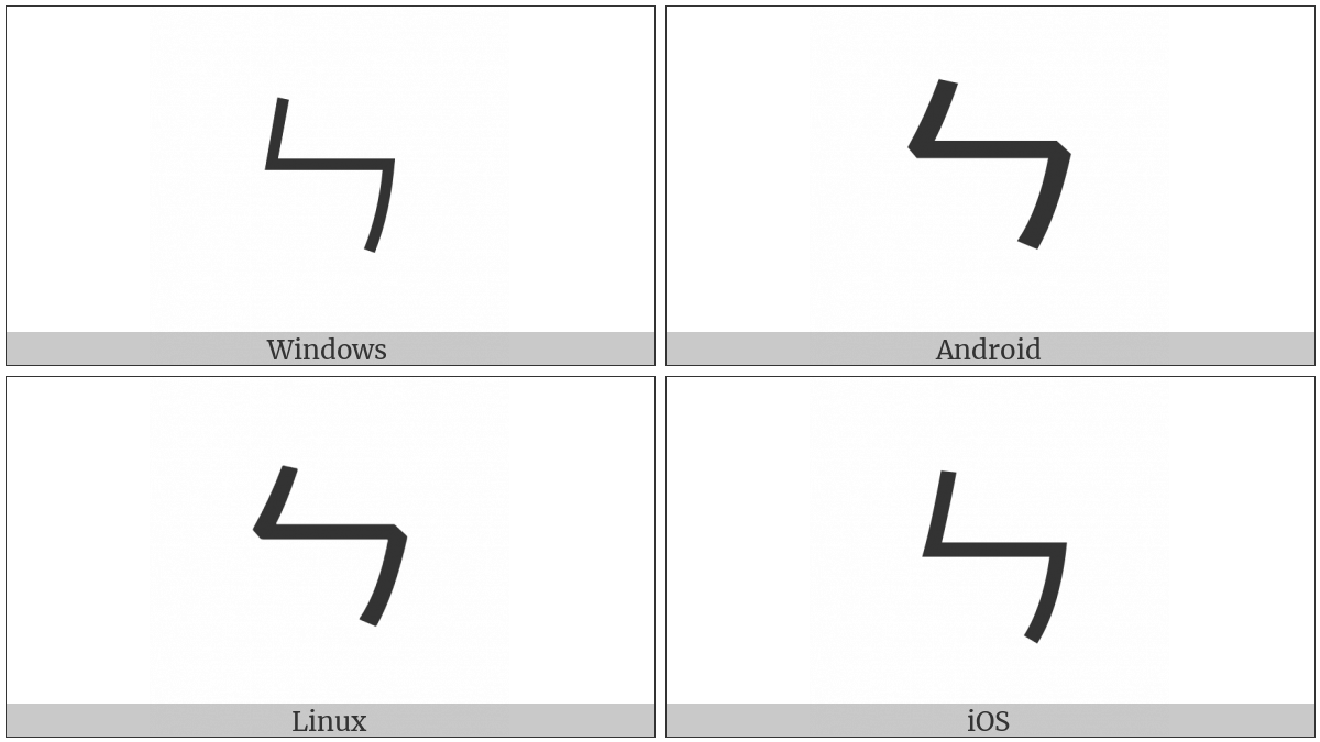 The image below shows how the “Bopomofo Letter En” symbol might look like on different operating systems. If the font in which this web site is displayed does not contain the symbol and there is no fallback font able to render it, you can use the image below to get an idea of what it should look like.