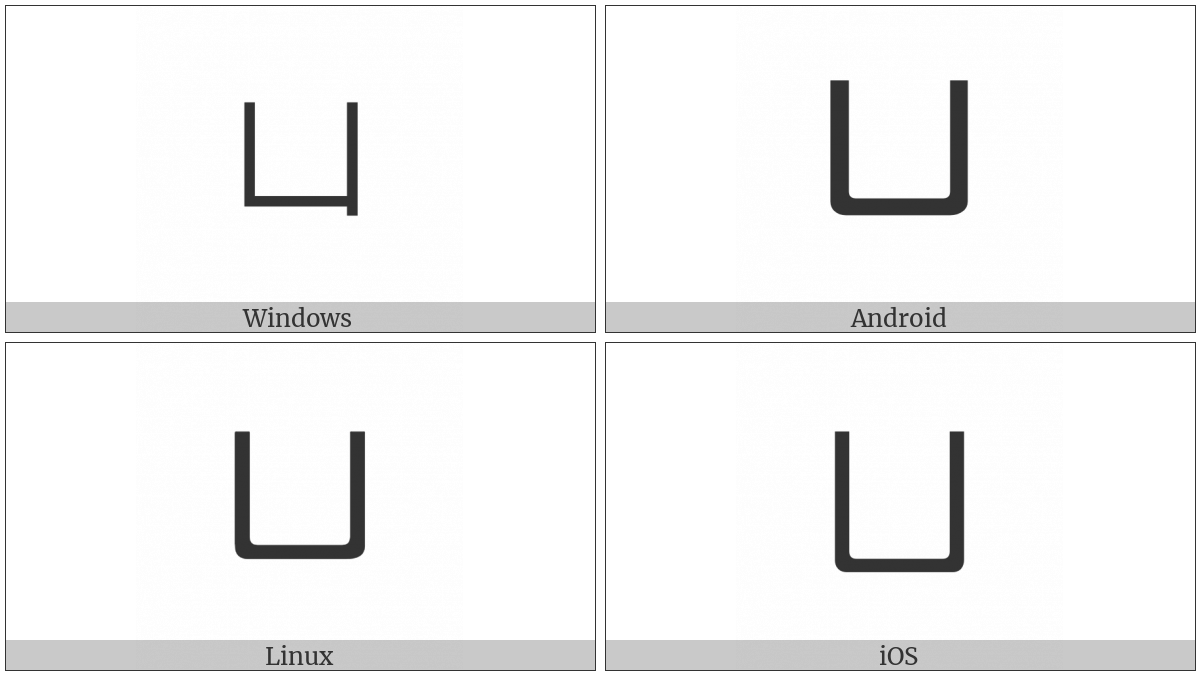 The image below shows how the “Bopomofo Letter Iu” symbol might look like on different operating systems. If the font in which this web site is displayed does not contain the symbol and there is no fallback font able to render it, you can use the image below to get an idea of what it should look like.