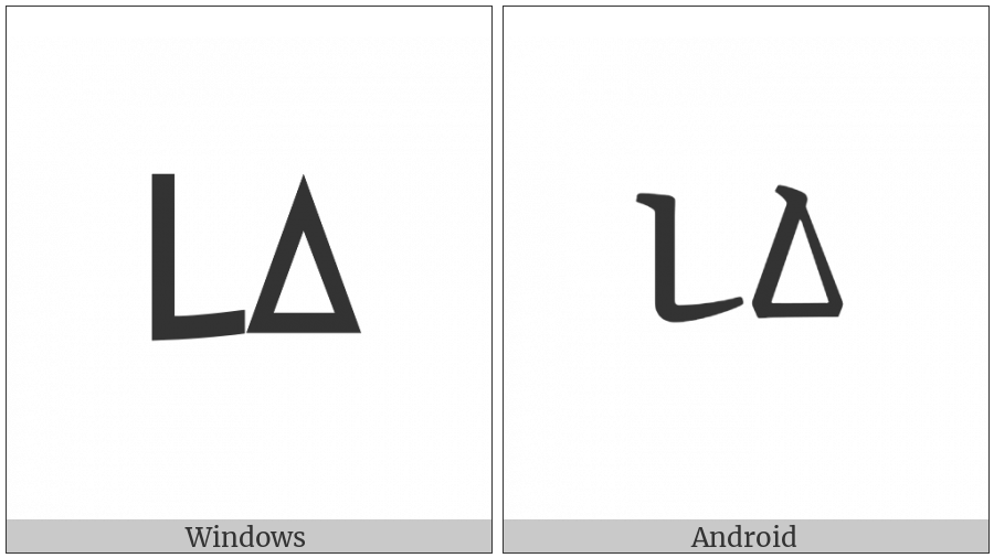 The image below shows how the “Hangul Letter Nieun-Pansios” symbol might look like on different operating systems. If the font in which this web site is displayed does not contain the symbol and there is no fallback font able to render it, you can use the image below to get an idea of what it should look like.