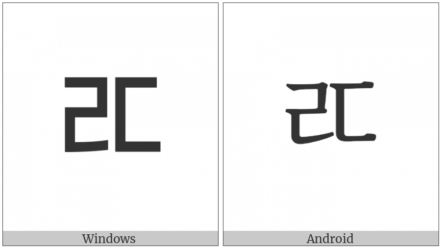 The image below shows how the “Hangul Letter Rieul-Tikeut” symbol might look like on different operating systems. If the font in which this web site is displayed does not contain the symbol and there is no fallback font able to render it, you can use the image below to get an idea of what it should look like.