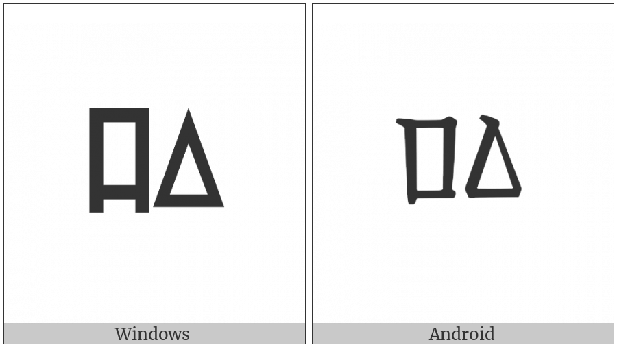 The image below shows how the “Hangul Letter Mieum-Pansios” symbol might look like on different operating systems. If the font in which this web site is displayed does not contain the symbol and there is no fallback font able to render it, you can use the image below to get an idea of what it should look like.