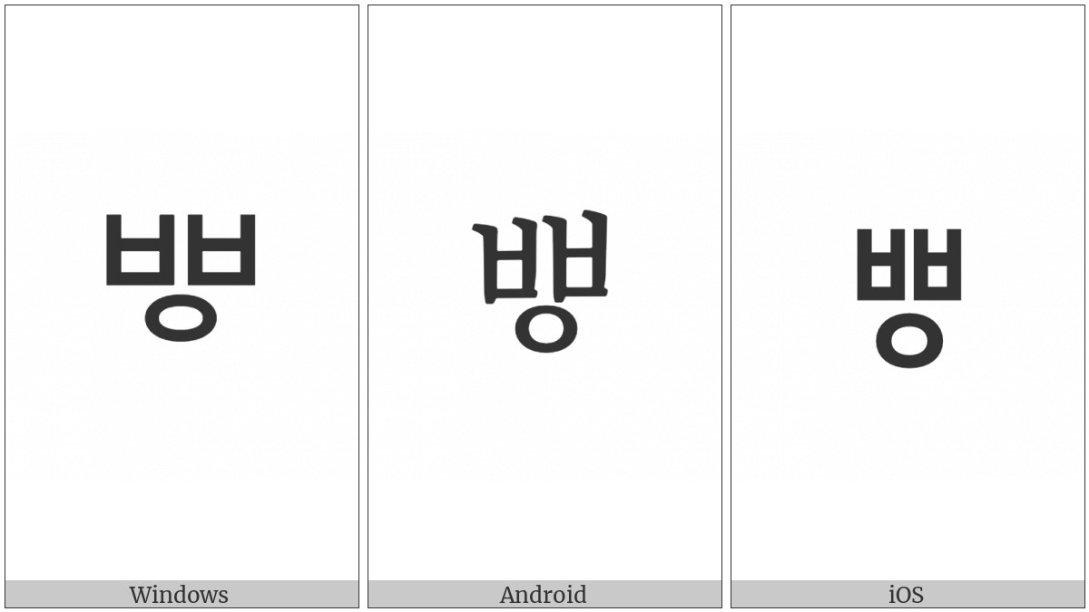 “Hangul Letter Kapyeounssangpieup” on various operating systems