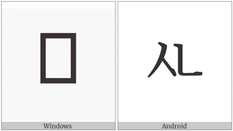 The image below shows how the “Hangul Letter Sios-Nieun” symbol might look like on different operating systems. If the font in which this web site is displayed does not contain the symbol and there is no fallback font able to render it, you can use the image below to get an idea of what it should look like.