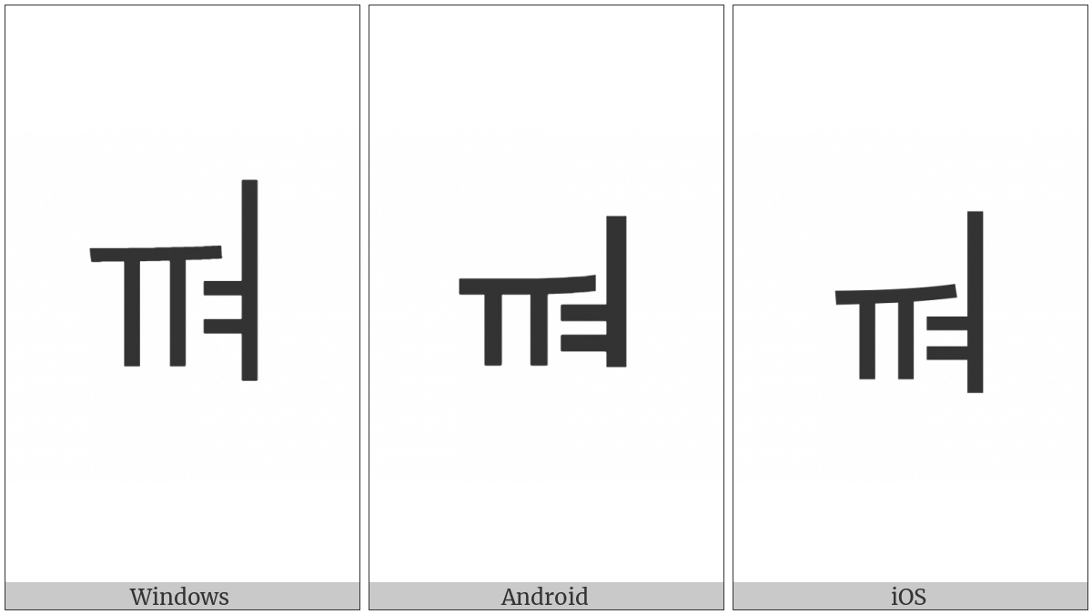 The image below shows how the “Hangul Letter Yu-Yeo” symbol might look like on different operating systems. If the font in which this web site is displayed does not contain the symbol and there is no fallback font able to render it, you can use the image below to get an idea of what it should look like.