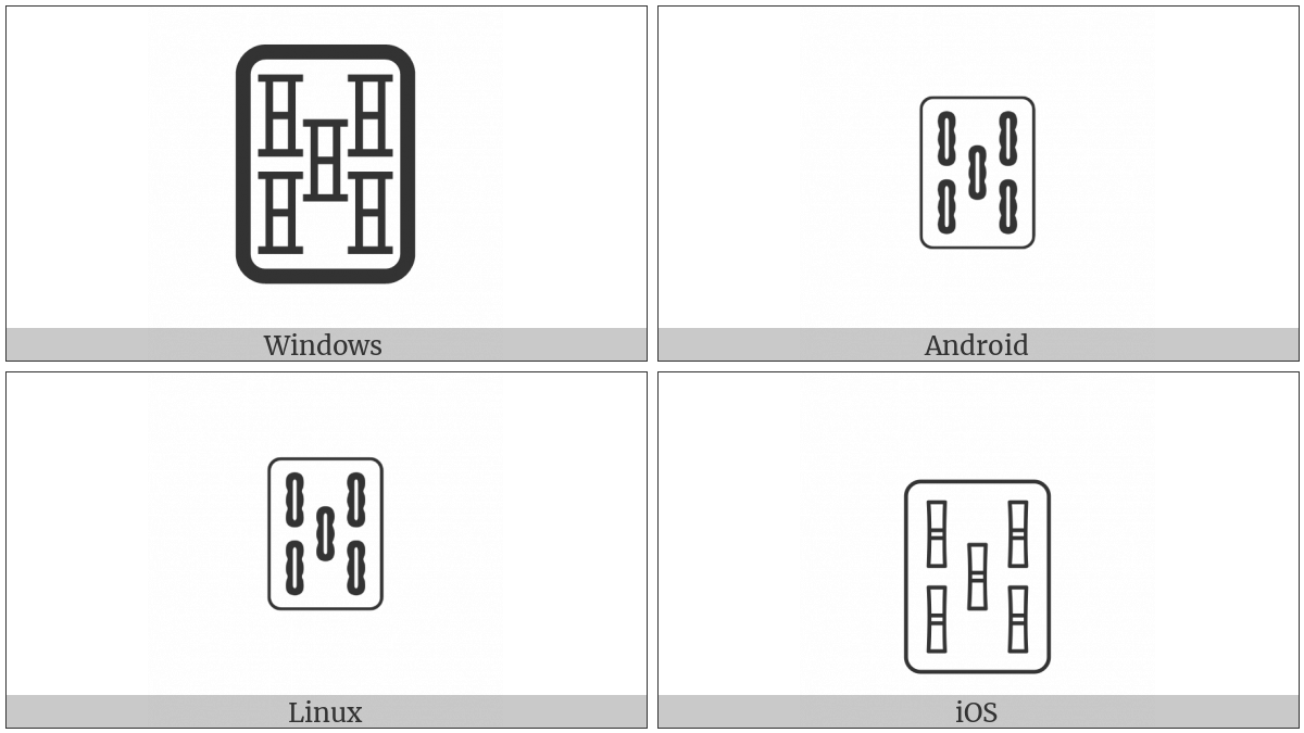 The image below shows how the “Mahjong Tile Five Of Bamboos” symbol might look like on different operating systems. If the font in which this web site is displayed does not contain the symbol and there is no fallback font able to render it, you can use the image below to get an idea of what it should look like.