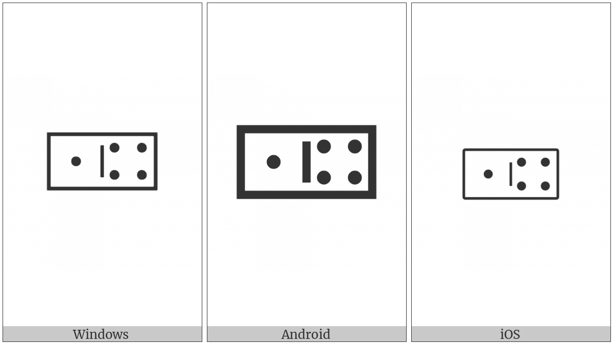 The image below shows how the “Domino Tile Horizontal-01-04” symbol might look like on different operating systems. If the font in which this web site is displayed does not contain the symbol and there is no fallback font able to render it, you can use the image below to get an idea of what it should look like.