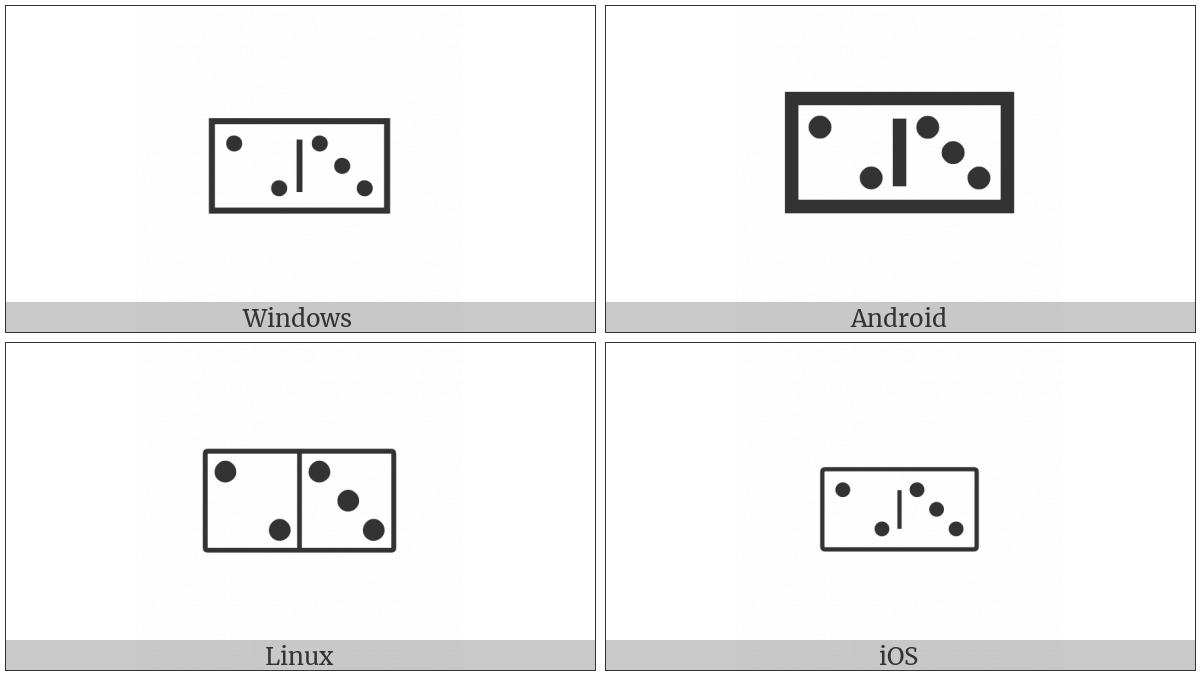 The image below shows how the “Domino Tile Horizontal-02-03” symbol might look like on different operating systems. If the font in which this web site is displayed does not contain the symbol and there is no fallback font able to render it, you can use the image below to get an idea of what it should look like.