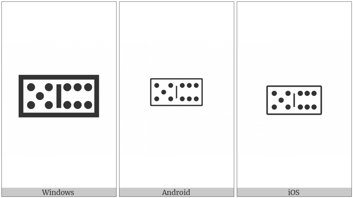 The image below shows how the “Domino Tile Horizontal-05-06” symbol might look like on different operating systems. If the font in which this web site is displayed does not contain the symbol and there is no fallback font able to render it, you can use the image below to get an idea of what it should look like.