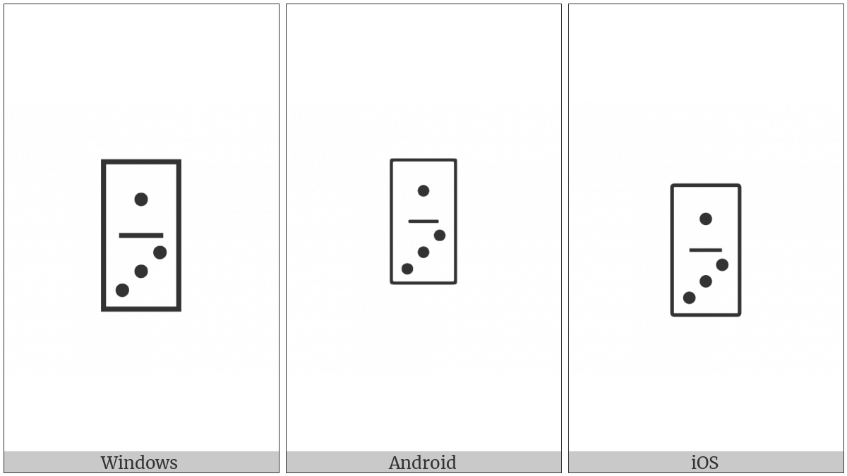 The image below shows how the “Domino Tile Vertical-01-03” symbol might look like on different operating systems. If the font in which this web site is displayed does not contain the symbol and there is no fallback font able to render it, you can use the image below to get an idea of what it should look like.