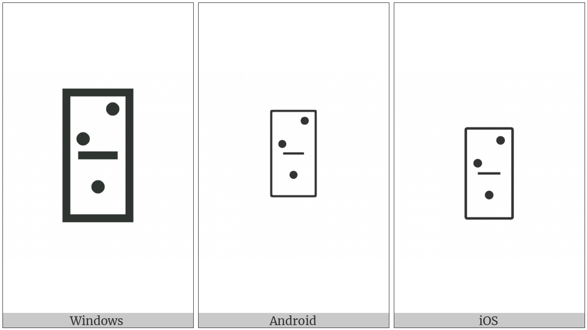 The image below shows how the “Domino Tile Vertical-02-01” symbol might look like on different operating systems. If the font in which this web site is displayed does not contain the symbol and there is no fallback font able to render it, you can use the image below to get an idea of what it should look like.
