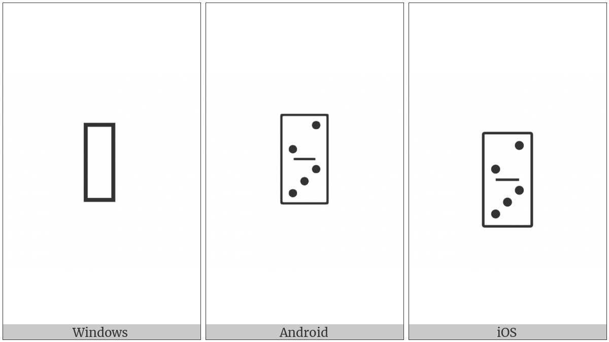 The image below shows how the “Domino Tile Vertical-02-03” symbol might look like on different operating systems. If the font in which this web site is displayed does not contain the symbol and there is no fallback font able to render it, you can use the image below to get an idea of what it should look like.