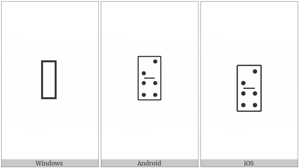 The image below shows how the “Domino Tile Vertical-02-04” symbol might look like on different operating systems. If the font in which this web site is displayed does not contain the symbol and there is no fallback font able to render it, you can use the image below to get an idea of what it should look like.