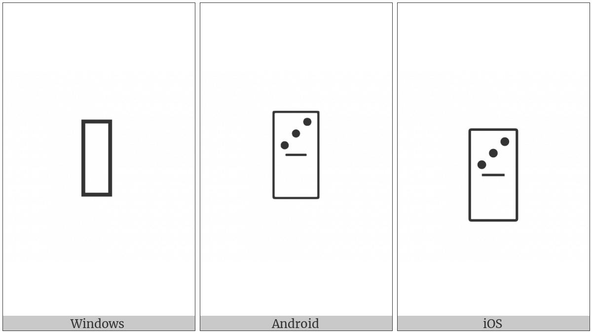 The image below shows how the “Domino Tile Vertical-03-00” symbol might look like on different operating systems. If the font in which this web site is displayed does not contain the symbol and there is no fallback font able to render it, you can use the image below to get an idea of what it should look like.
