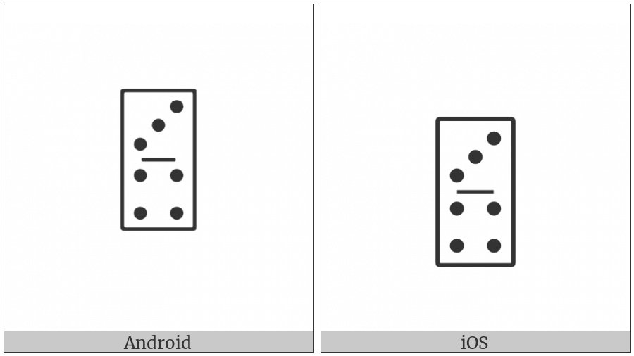 The image below shows how the “Domino Tile Vertical-03-04” symbol might look like on different operating systems. If the font in which this web site is displayed does not contain the symbol and there is no fallback font able to render it, you can use the image below to get an idea of what it should look like.