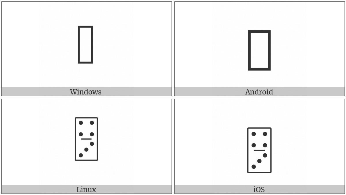 The image below shows how the “Domino Tile Vertical-04-03” symbol might look like on different operating systems. If the font in which this web site is displayed does not contain the symbol and there is no fallback font able to render it, you can use the image below to get an idea of what it should look like.