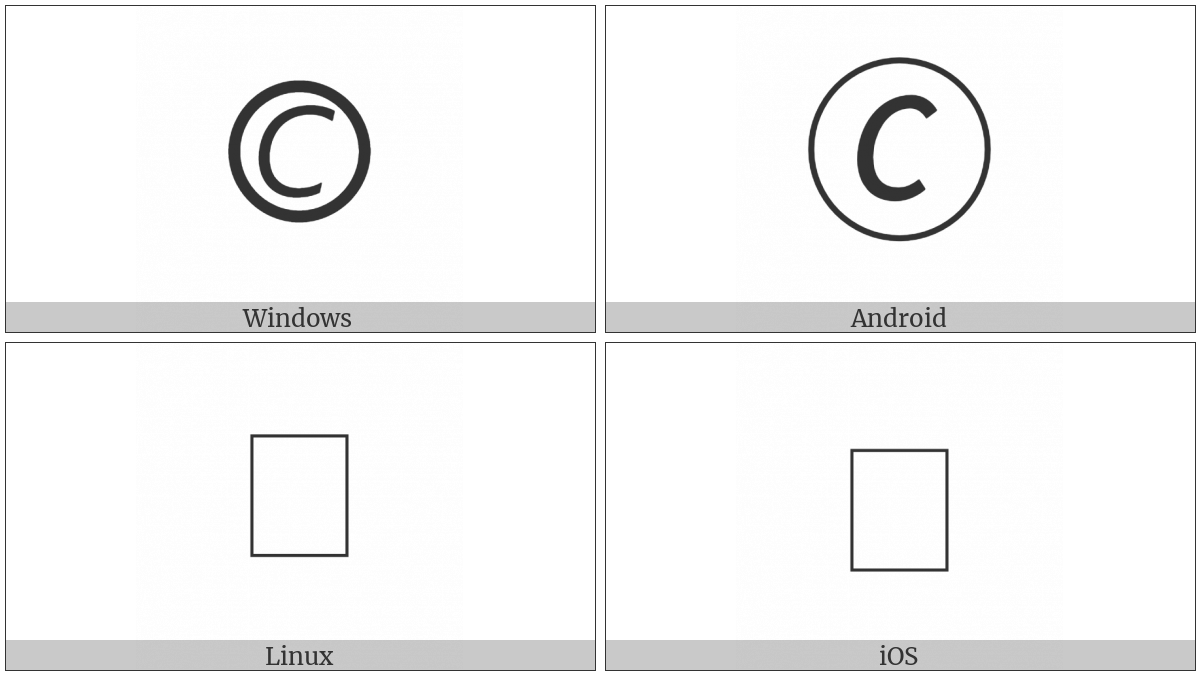 The image below shows how the “Circled Italic Latin Capital Letter C” symbol might look like on different operating systems. If the font in which this web site is displayed does not contain the symbol and there is no fallback font able to render it, you can use the image below to get an idea of what it should look like.