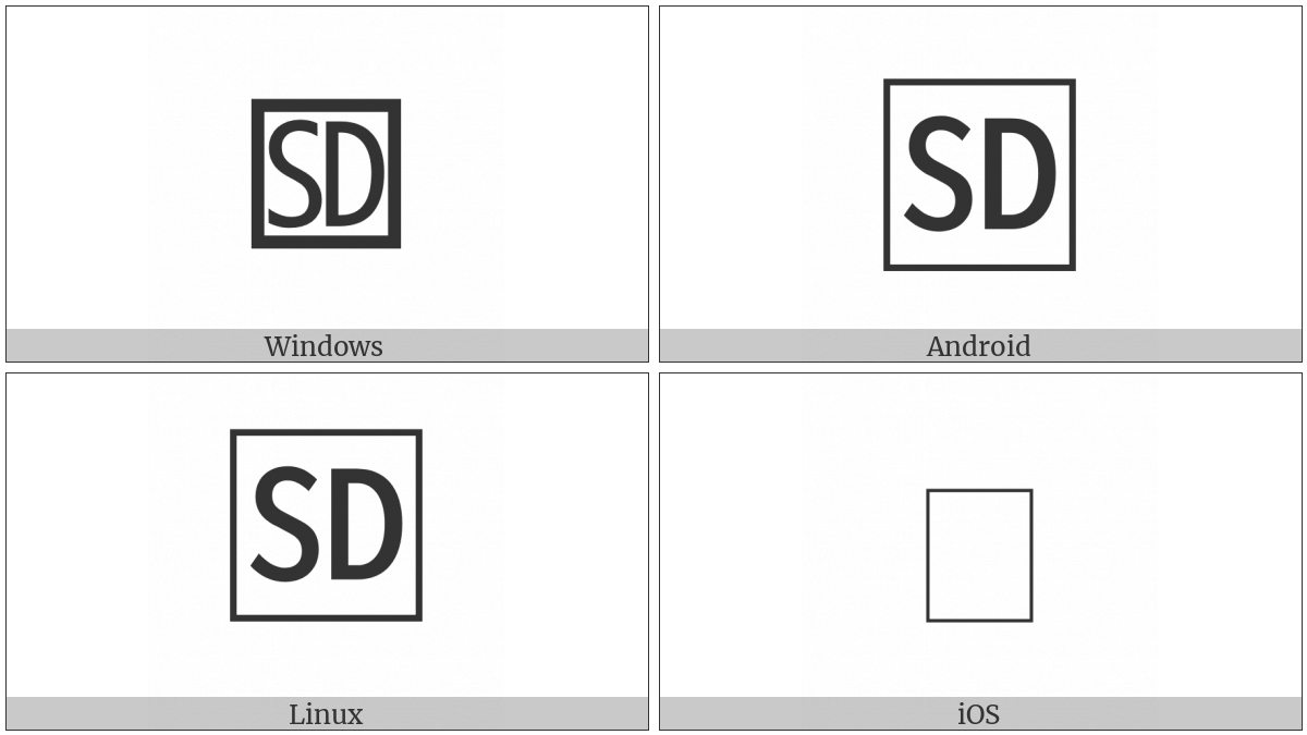 The image below shows how the “Squared Sd” symbol might look like on different operating systems. If the font in which this web site is displayed does not contain the symbol and there is no fallback font able to render it, you can use the image below to get an idea of what it should look like.